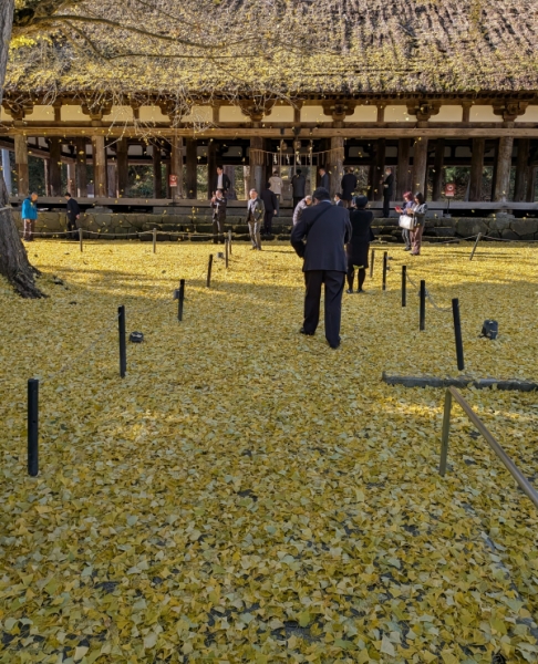 風で色づいた銀杏の葉が勢いよく地面を覆い尽くしておりました。