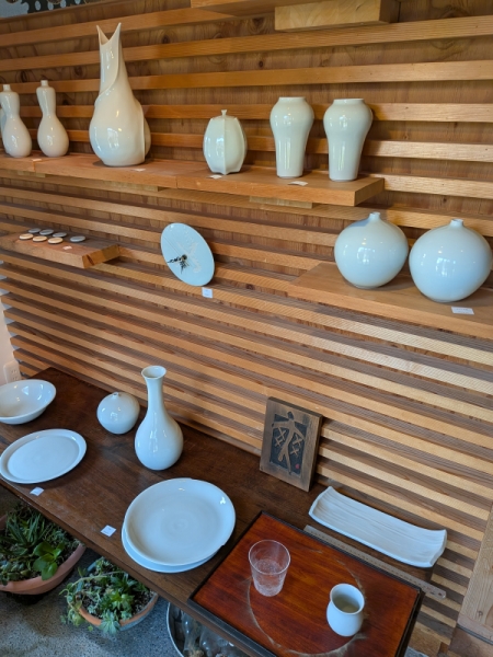 続きまして、お客様に教えて頂いた会津美里町の窯元さんへ。気になる城趾を横目にギャラリー訪問させて頂きました。『福島市でフランス料理店営業しております菅野と申します』と、ご挨拶しましてお皿のお話させて頂きました。